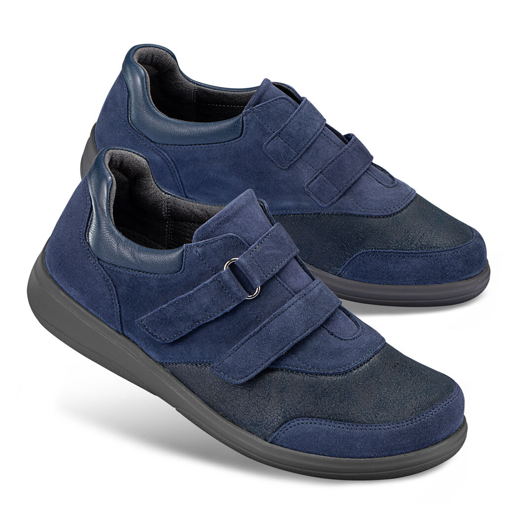 Komfortabler Luxus-Sneaker in flexibler Strobel-Verarbeitung für empfindliche Füße, extrabreit und doppelt mit Klett verstellbar. Aus geschmeidigem Ziegenleder mit Stretcheinsatz im Vorderfuß und Mikrofaserfutter. Hervorragend dämpfende Sensitiv-Sohle mit Wechselfußbett.