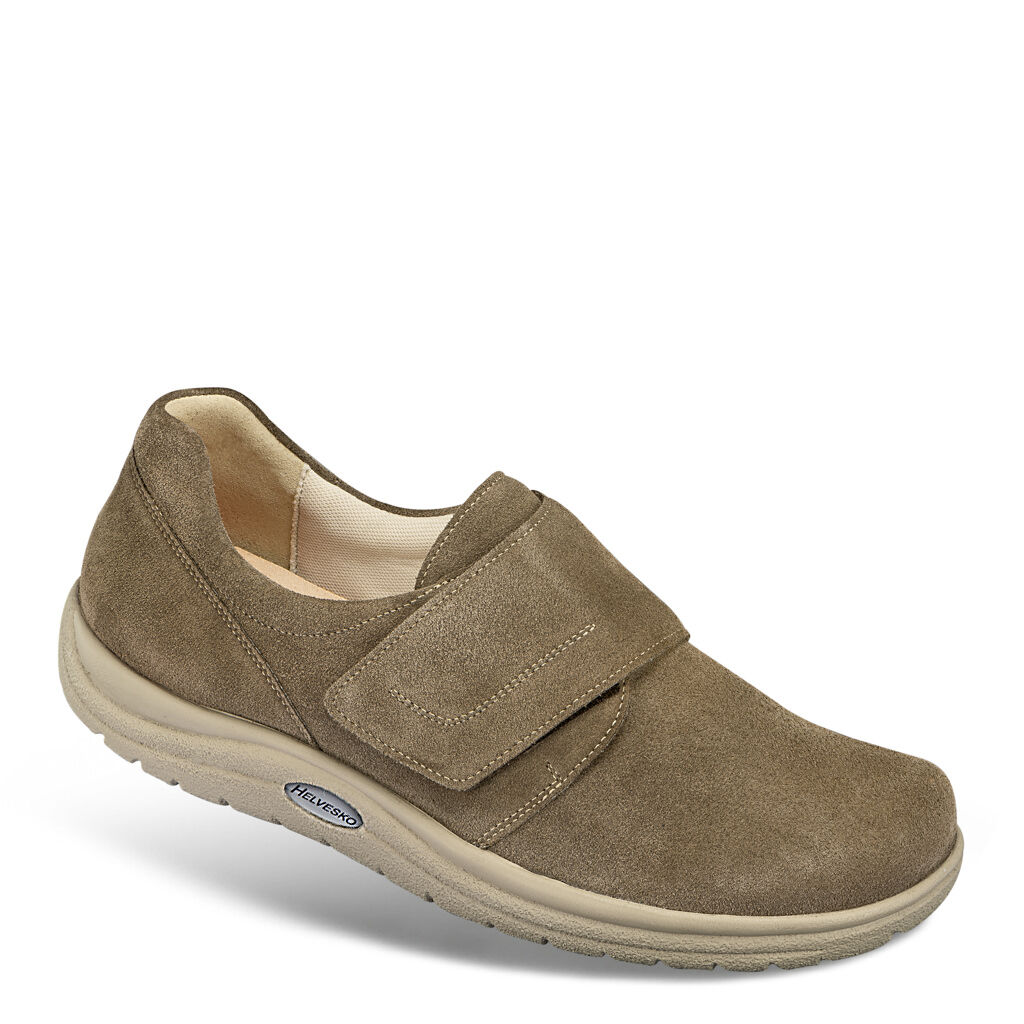 Der vielseitige Slipper passt auf einen Griff durch das praktische Klettband. Im zeitlosen Stil aus Veloursleder mit Randpolstern, innen Futter aus fußtrocknender Mikrofaser und ein gegen eigene Einlagen austauschbares Fußbett. Die flexible Explorer-Sohle fördert ideal das natürliche Abrollen.