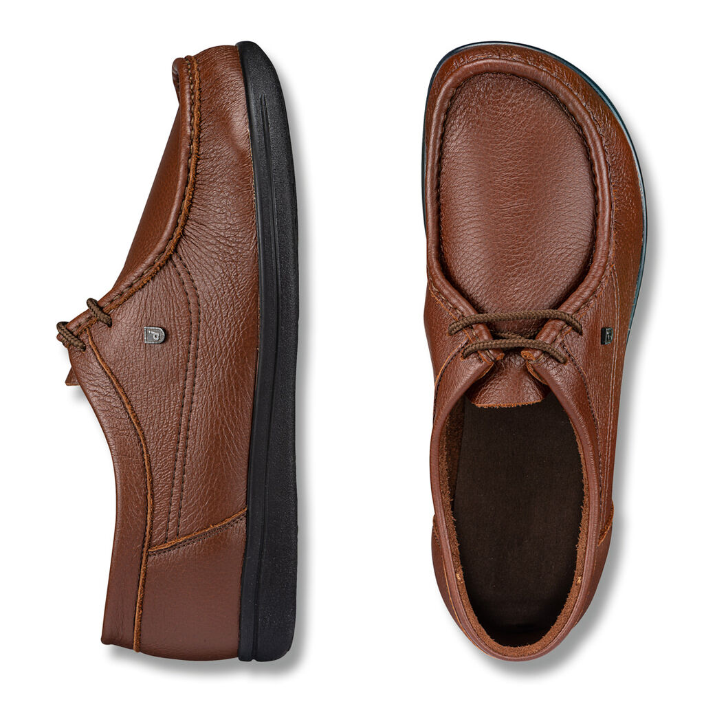 Der handgenähte Mokassin ist der pure Genuss von den Zehenspitzen bis in den Rücken. Die hohe Schnürung sitzt druckfrei auch am höheren Rist. Vollkommen wird das Wohlgefühl durch das weiche Elchleder. Für besondere Atmungsaktivität wird es ungefüttert verarbeitet. Dämpfende Sohle in Null-Linie, mit selbstformendem Fußbett.