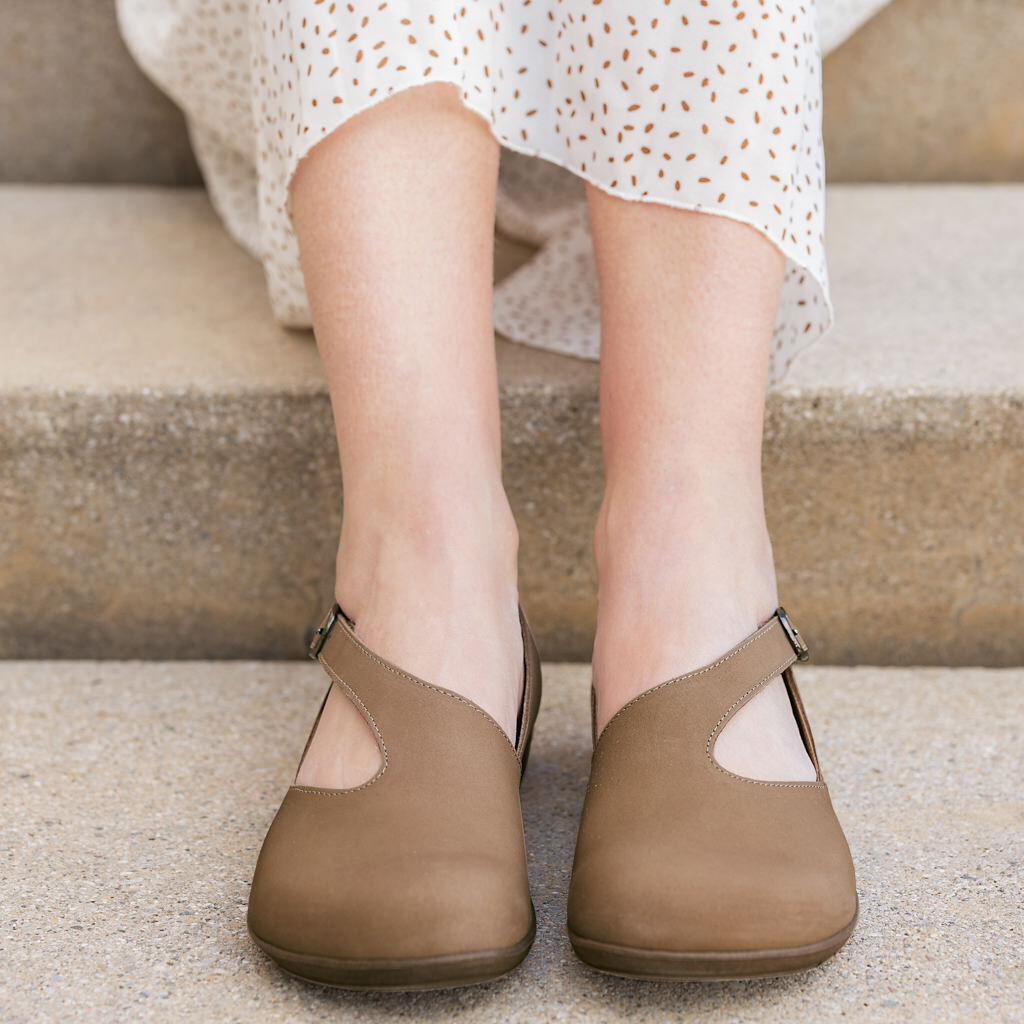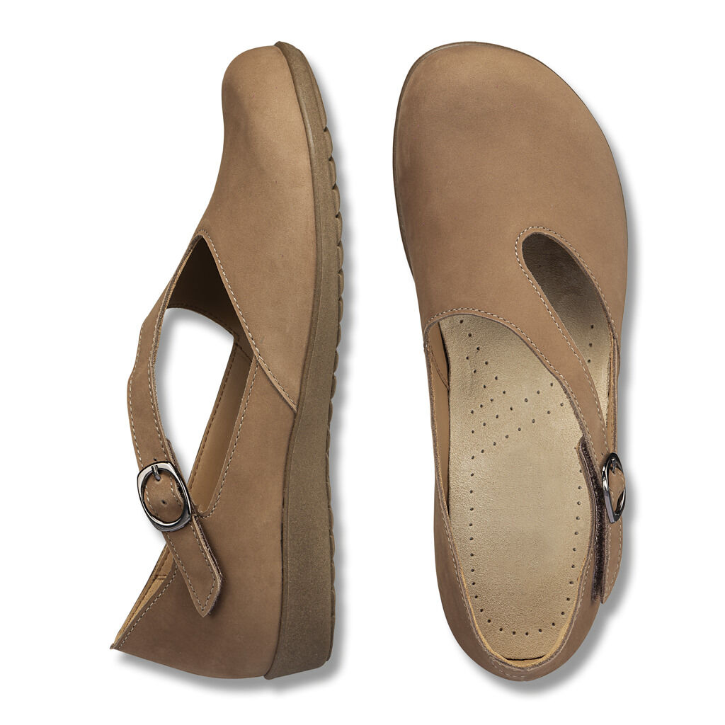 Ich bin sehr zufrieden. Die Verarbeitung und das Material ist ausgezeichnet. Der Schuh ist flach und bequem. Die Schräge mit dem Klettverschluss verleiht Halt und ist schick verarbeitet.