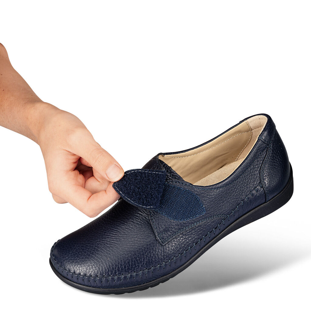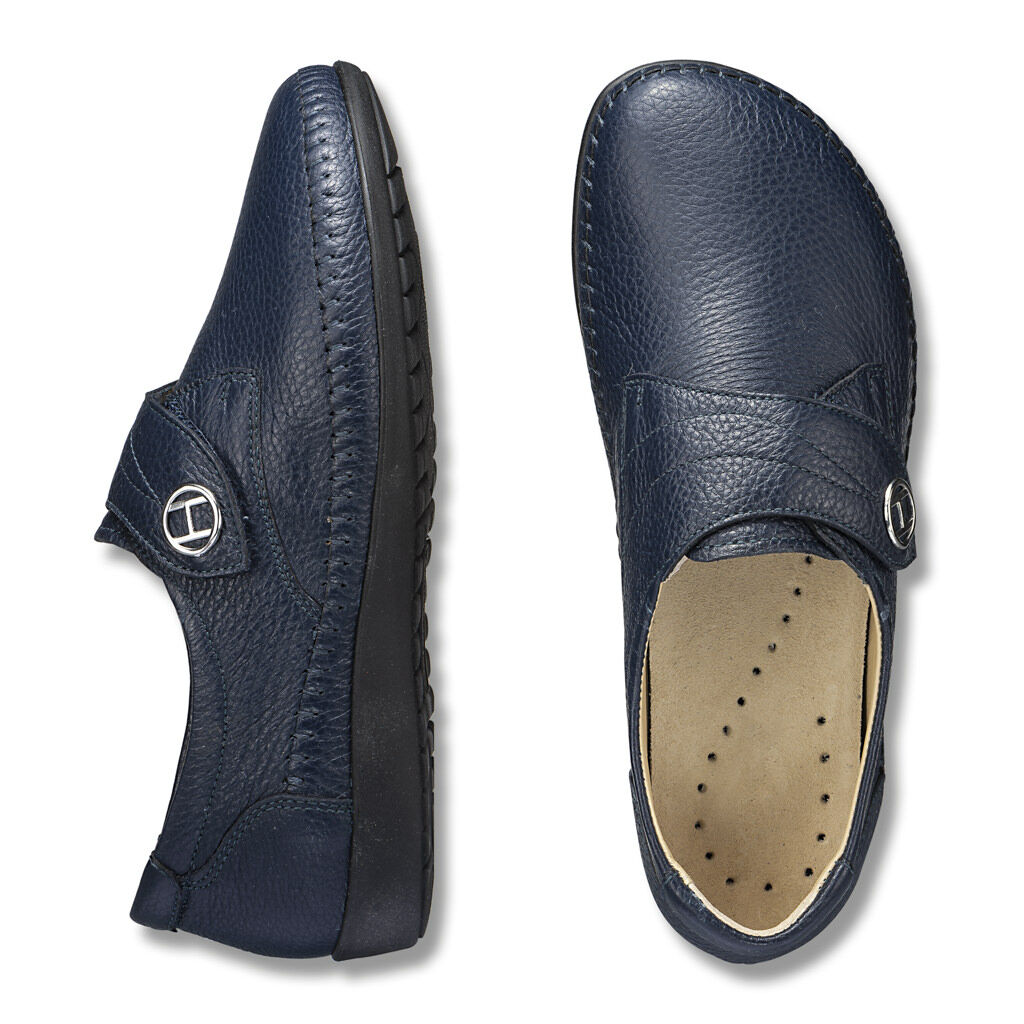 Dieser handgenähte Mokassin ist dank des weichen Hirschleders und der Machart gleich doppelt geschmeidig. Am Einstieg weit aufzuklappen, mit Klettband für den sicheren Halt. Luxuriöse Qualität mit Lederfutter, herausnehmbarem Lederfußbett und Weichtritt-Sohle mit dämpfendem Ballenkissen.