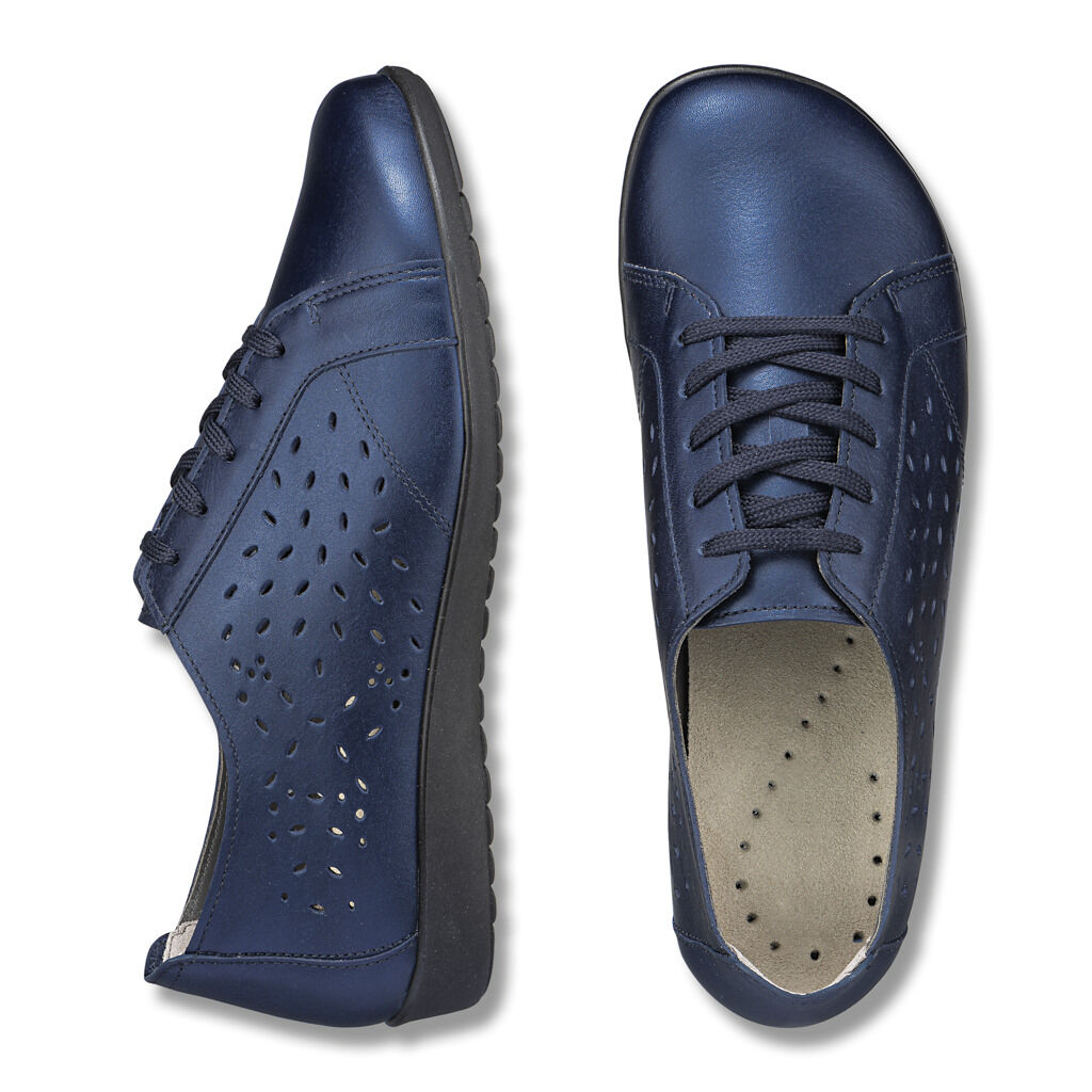 Passgenau im Derby-Schnitt, ein komfortabler Sommerschuh aus Nappaleder mit Perlato-Glanz, Lochmuster und Lederfutter. An der Zunge unterpolstert, an der Ferse mit weichem Lederrand. Das Fußbett ist herausnehmbar. Federleichte Weichtritt-Sohle.