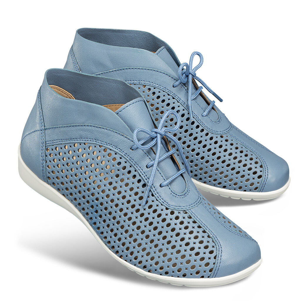 Hochwertiger Sommer-Bootie aus weichem Lamm- Nappaleder mit Lochmuster, schonend ledergefüttert und in der Bequemform verstärkt. Der hohe