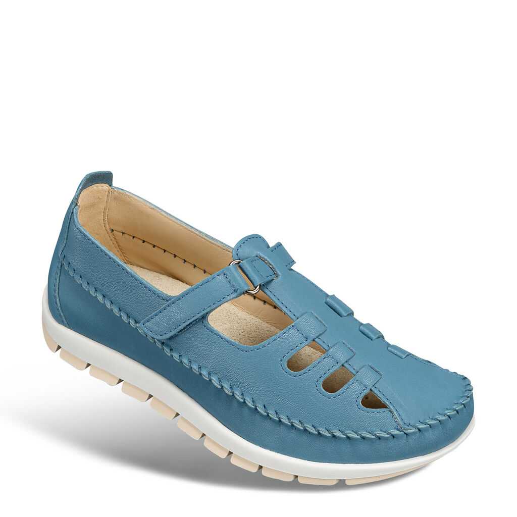 Barfußtraum als luftiger Mokassin, der pure Genuss vom herrlich weichen Leder bis zum fließenden Abrollen auf der leichten Rollover-Sohle. Handgenähter Sandalen-Mokassin mit Lederfutter, Klettband und austauschbarem Fußbett.