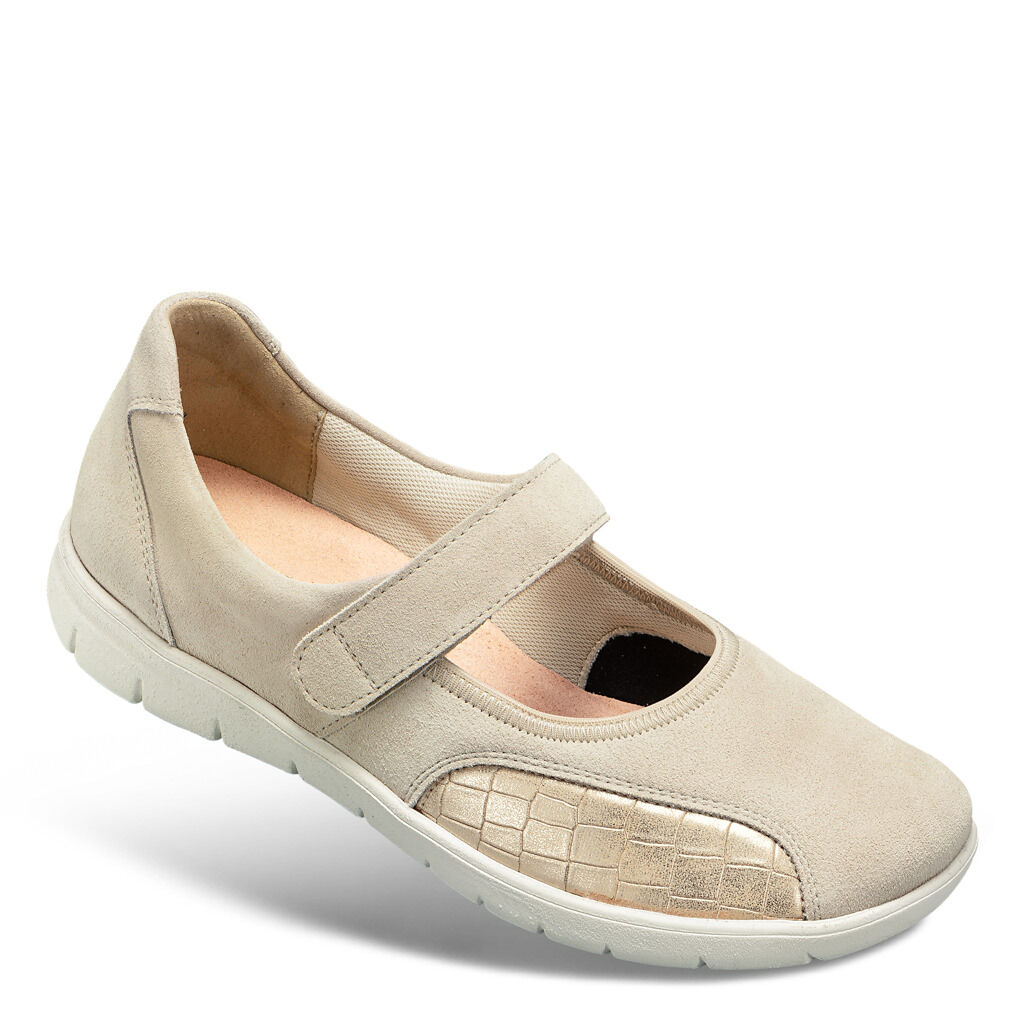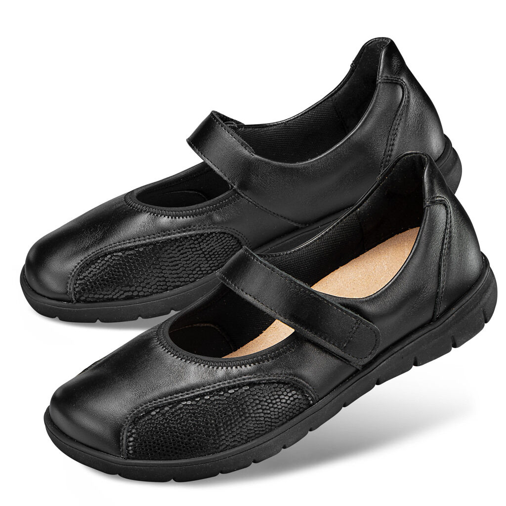 Großzügig und weich: Spangen- Ballerina für empfindliche Füße, speziell an den Zehenballen. Aus weichem Leder mit nachgiebigen Dehnzonen, in klassischer Optik mit Klettband, hohem Fersenpolster und tiefem Seitenausschnitt. Innen fußtrocknende DryClim-Mikrofaser. Wunderbar zum Abrollen ist die Infinity-Sohle mit Wechseleinlage.