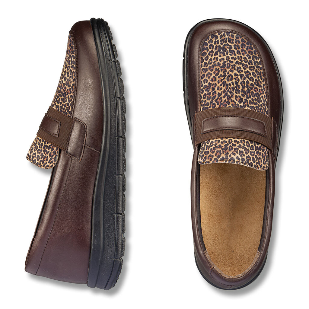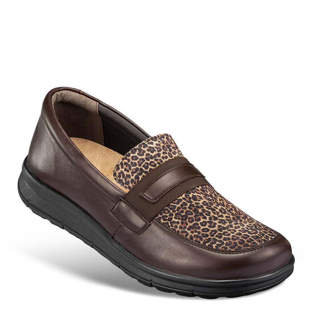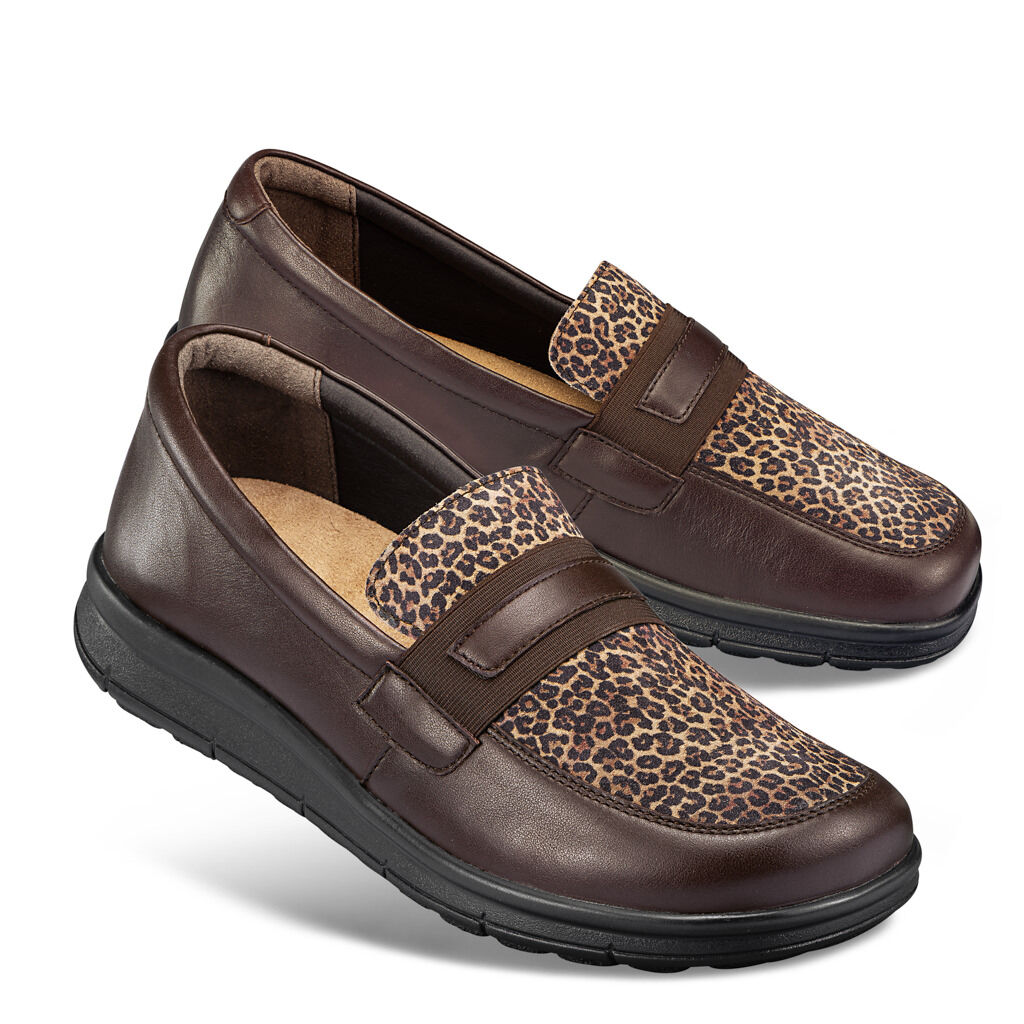 Ein Lieblingsmodell aus weichem Nappaleder und Effektleder im angesagten Leo-Look mit einer elastischen Leder-Schmuck- Schnalle. Schlank in der Optik durch den Napparand im Zehenbereich. Hervorragend dämpfende Leicht-Flex-Sohle mit atmungsaktivem Textilfutter und Wechseleinlage.