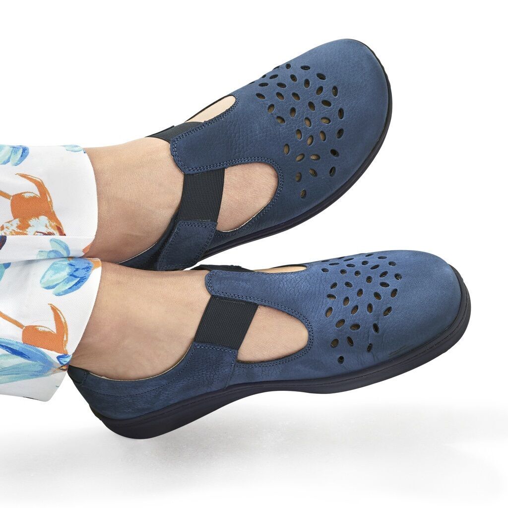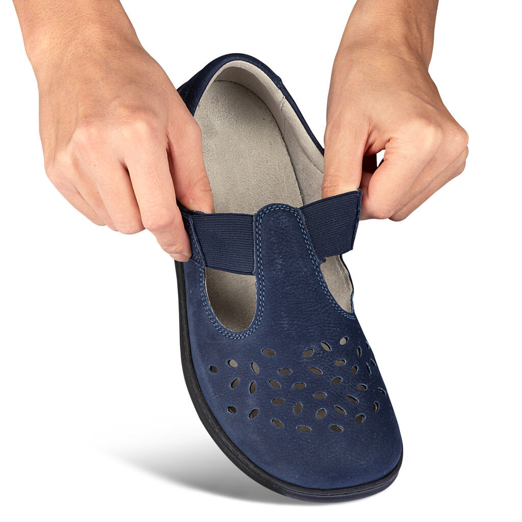 Durch die Verarbeitung von perforierten oder gelochten Ledern sowie von luftdurchlässigen Textilien gewährleisten wir eine hohe Atmungsaktivität unserer Sommerschuhe. Auf diese Weise kann der Schweiß abtransportiert werden und die Außenluft gelangt in den Schuh. Dadurch kann der Fuß atmen.