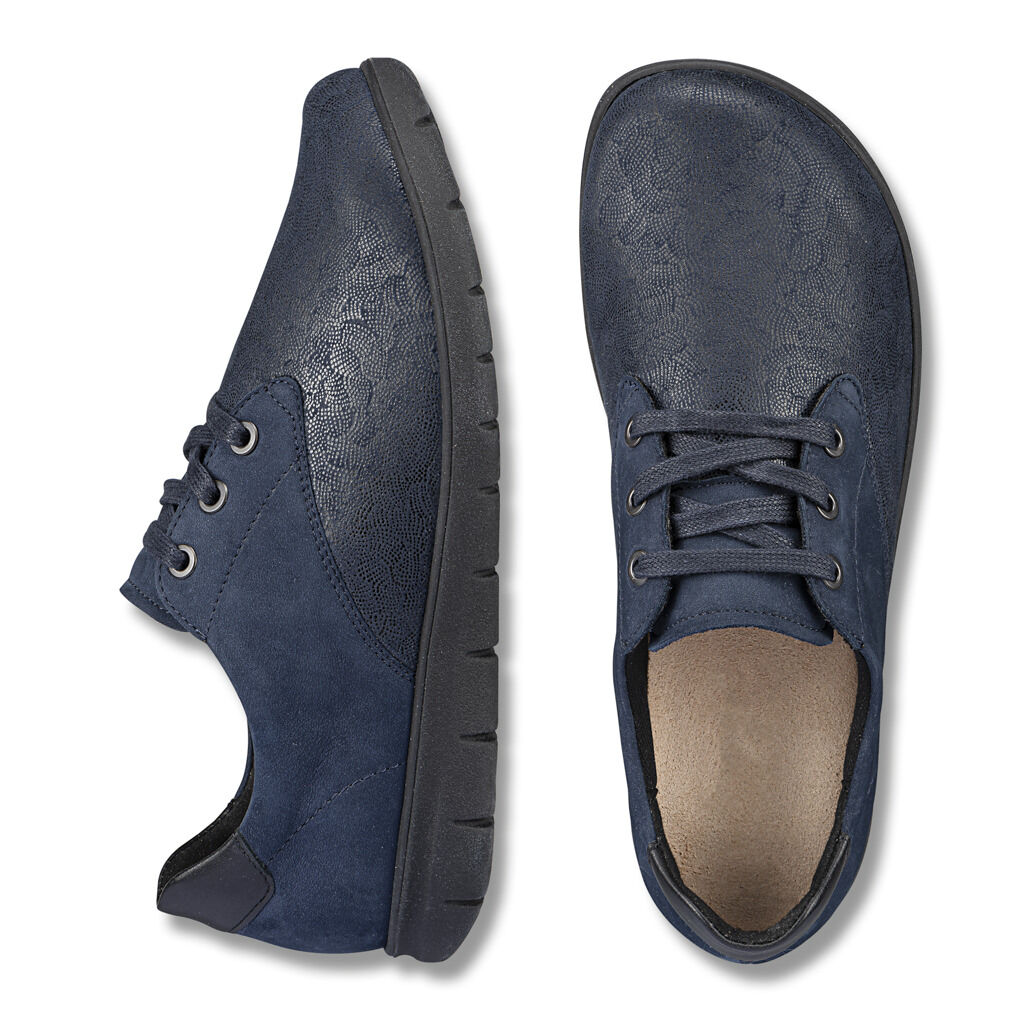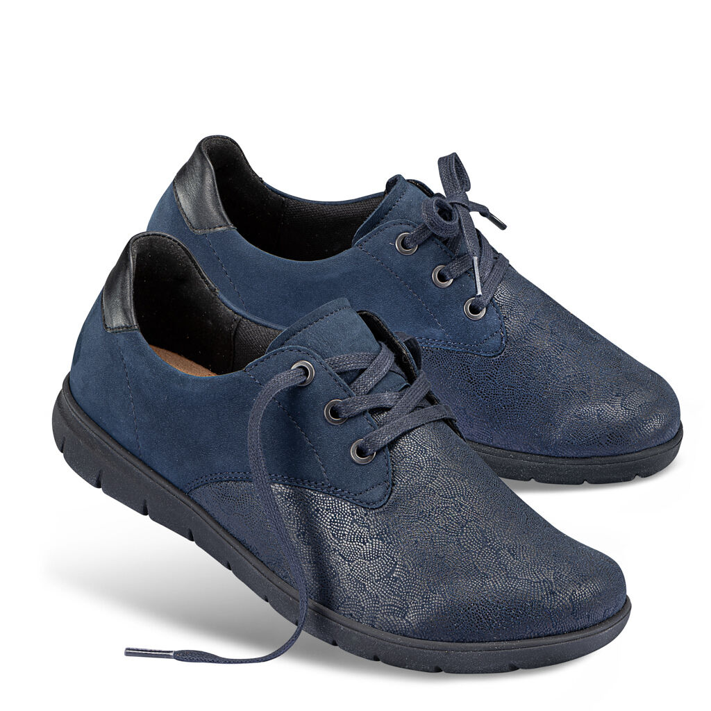 Halbschuh mit kurzer Derby-Schnürung und nahtfreiem Vorderfuß. Weiches Mikrofaserfutter, griffige und rutschmindernde Gummisohle mit Wechselfußbett aus Kork.