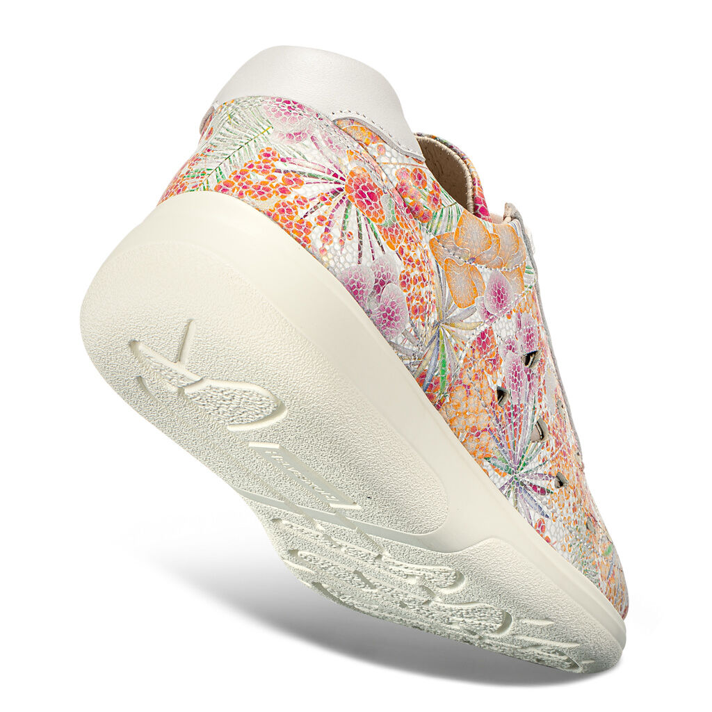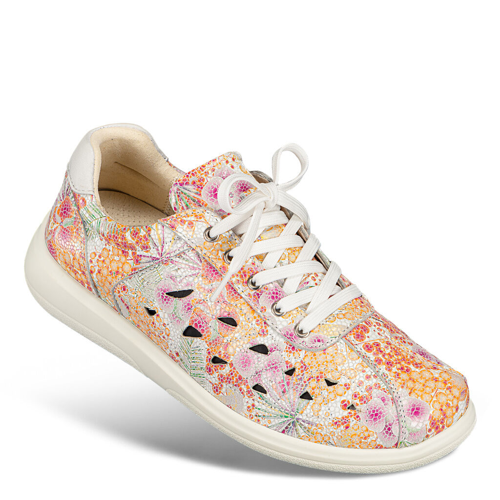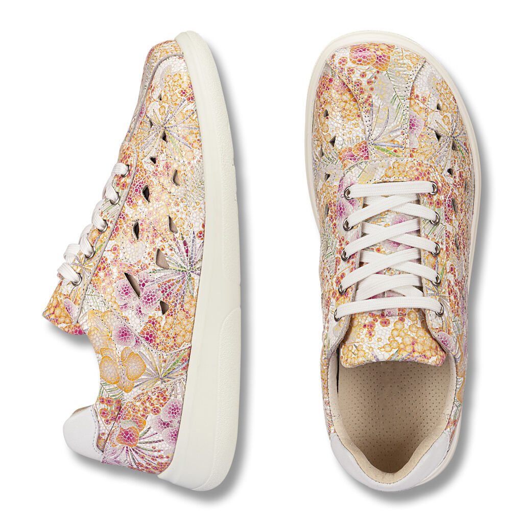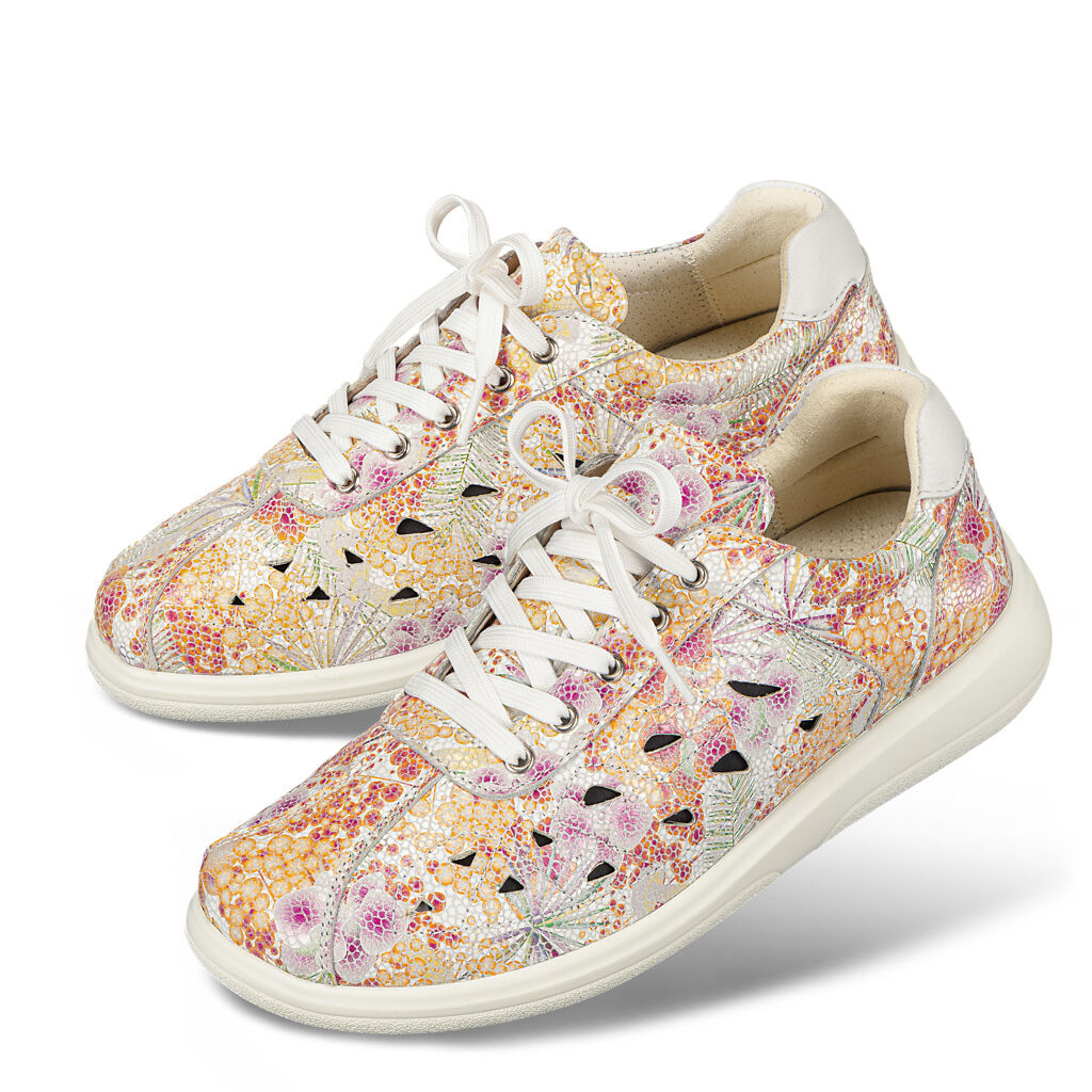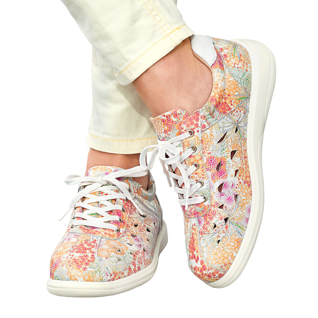 Blüten und Farben machen Lust auf Sommer: luxuriöser Sneaker aus Effektleder mit luftdurchlässigem Lochmuster. Am Fuß flexibel und weich, an Zunge und Rand sanft gepolstert. Mit hautfreundlichem Lederfutter. Doppelt stoßdämpfende Sensitiv-Sohle mit Wechselfußbett und Weitenausgleich.