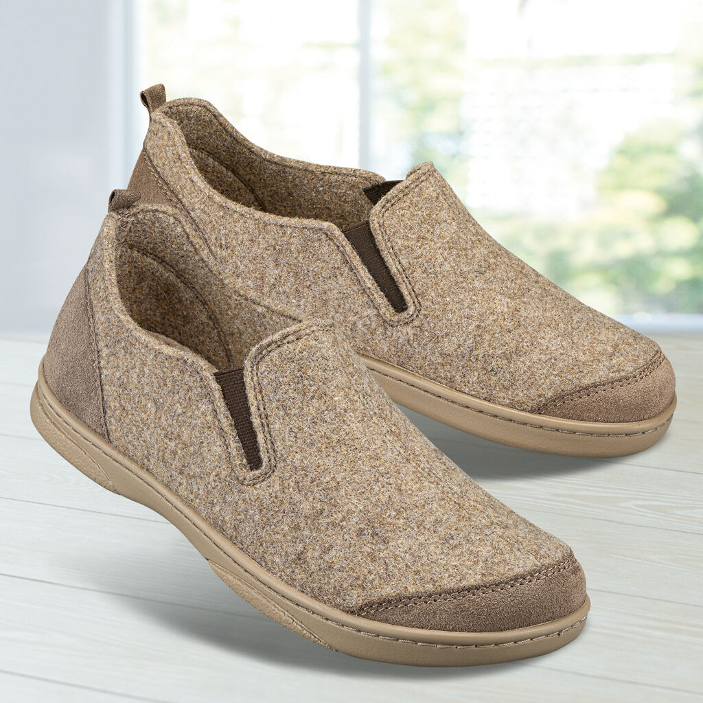 Robust, wunderbar bequem und geformt nach dem Vorbild des Fußes. Der weiche Wollfilz ist mit Leder verstärkt und hat Dehnzonen am Einschlupf. Mit Wechselfußbett auf der luftgepolsterten Schalen-Sohle.