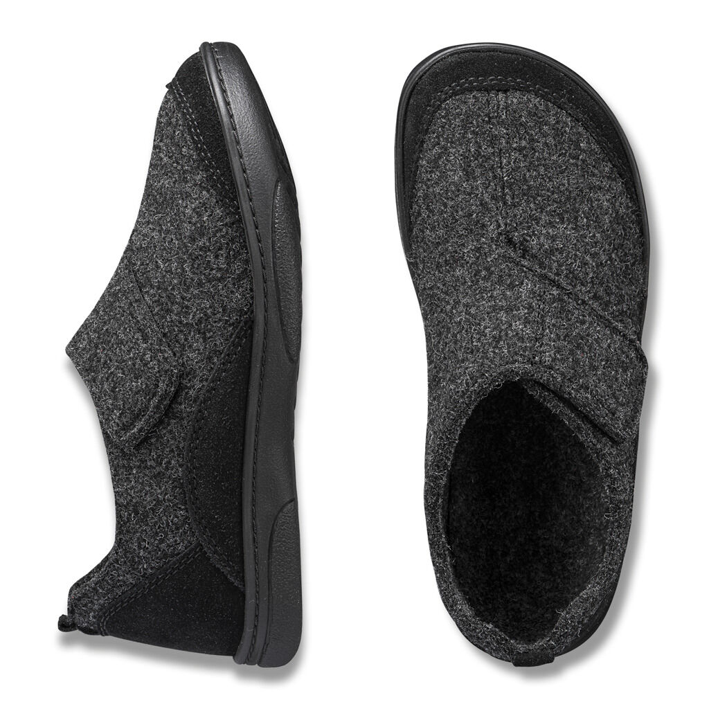 Weicher, robuster Wollfilz mit praktischem Klettband, extra weit zu öffnen. Ideal Wärme und Feuchtigkeit ausgleichend und formstabil mit Leder verstärkt. Dennoch flexibel am Fuß und mit federleichter Schalen-Sohle inklusive Wechselfußbett.