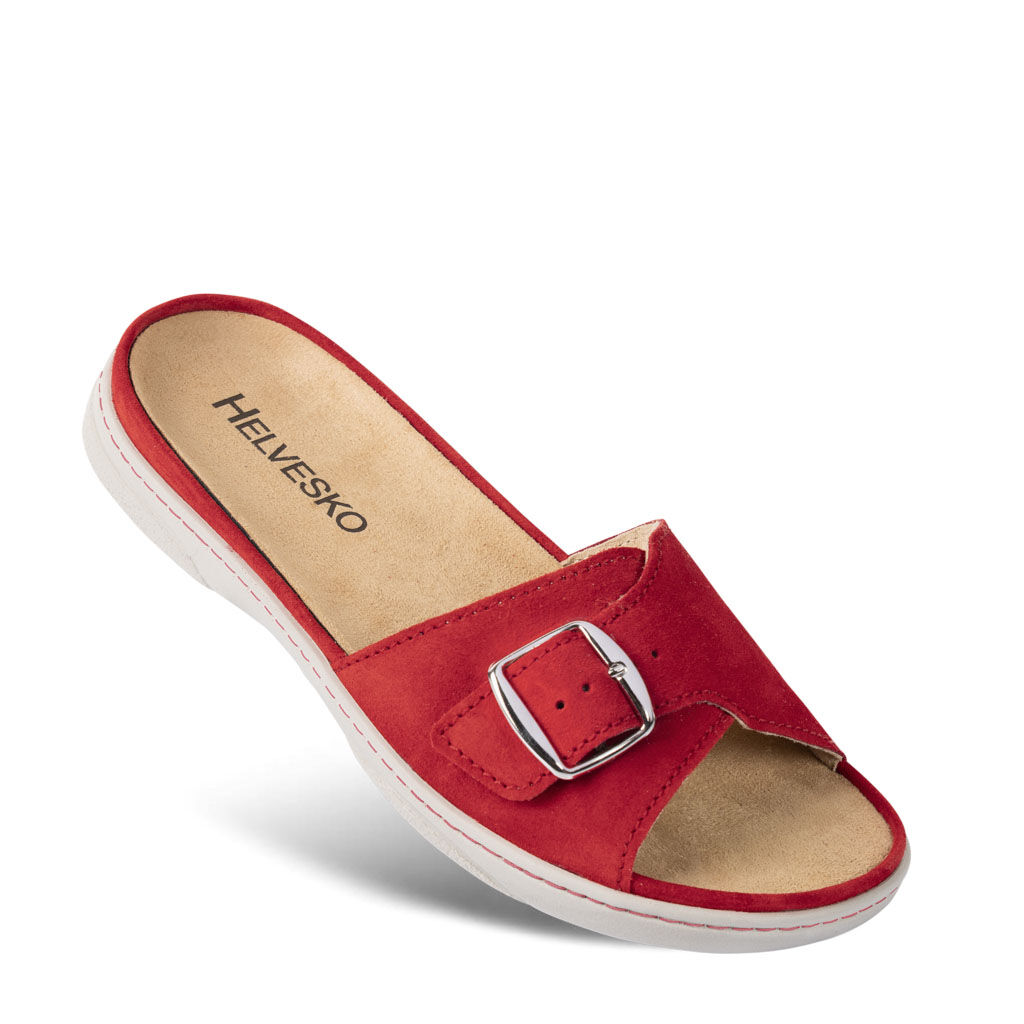 Für drinnen und draußen, mit praktischer Schnalle zum Verstellen, Elasteinsatz und breiter Paspelierung ringsherum. Das Fußbett versinkt dabei ganz in der Sohle. Mit Lederfutter auf der leichten Schalen-Sohle und auswechselbarer Einlage.