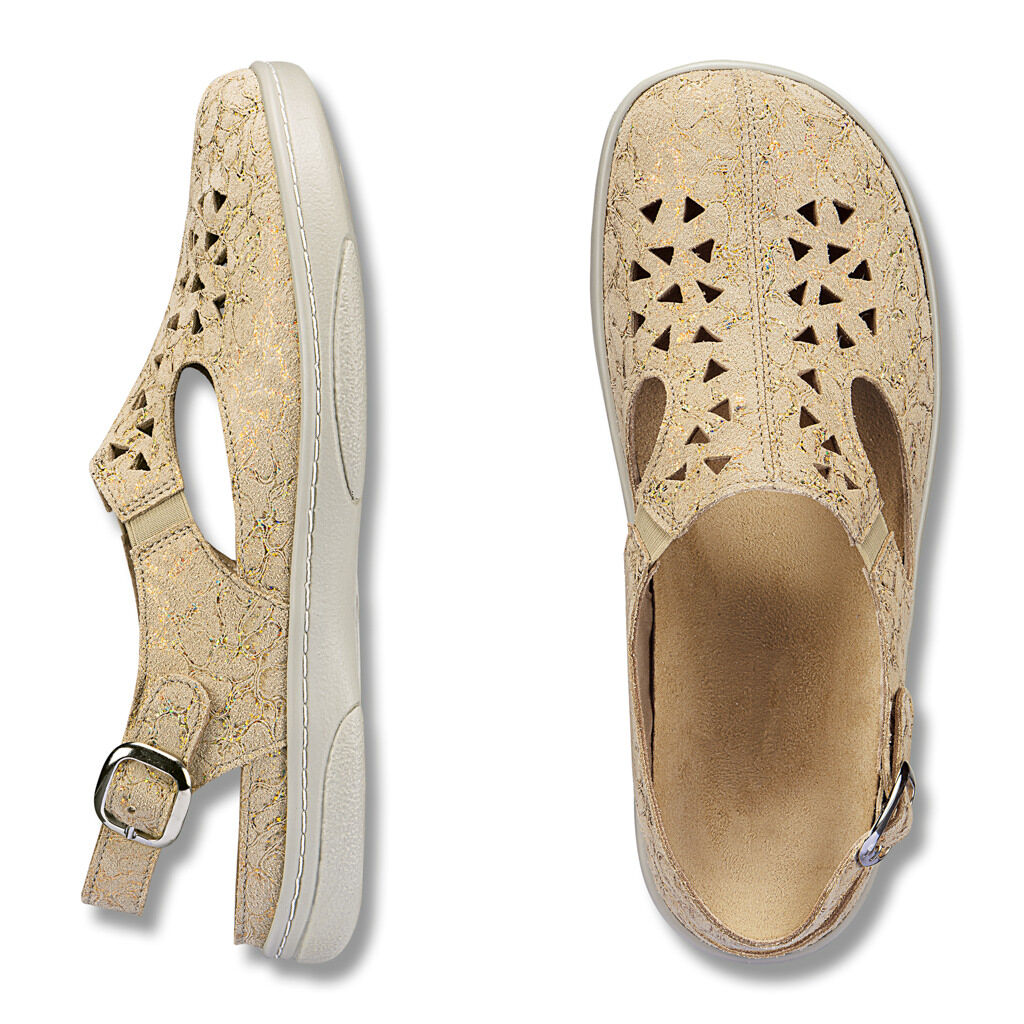 Lässig wie ein leichter Sommer-Clog mit Fersenriemen wie eine Sandale! Ein wunderbarer Barfußschuh aus Leder mit Lederfutter und Dehnzonen, flexibel in Opanken-Machart. Die Stretch-Einsätze machen jeden Schritt flexibel mit und geben idealen Halt. Polsterfußbett mit Mikrofaser, leichte Schalen-Sohle.