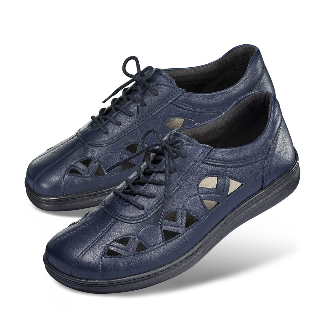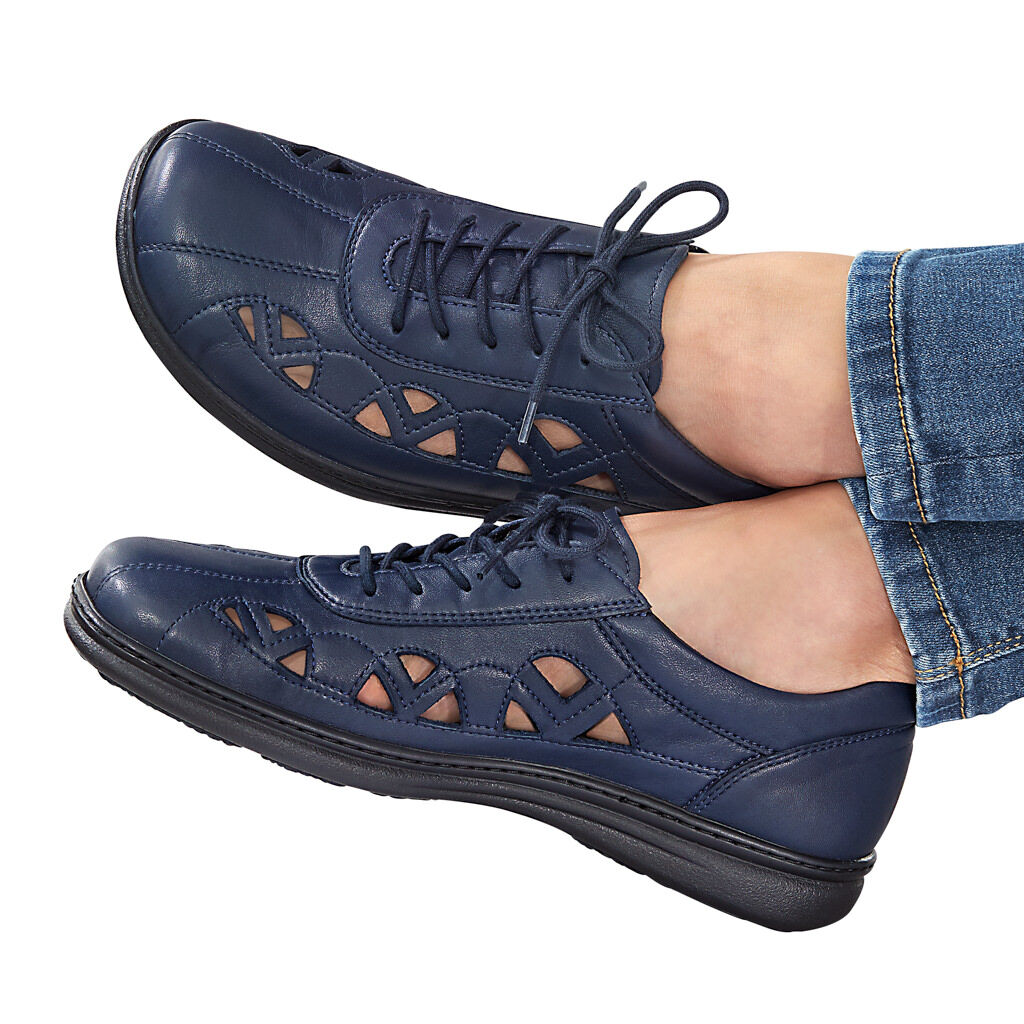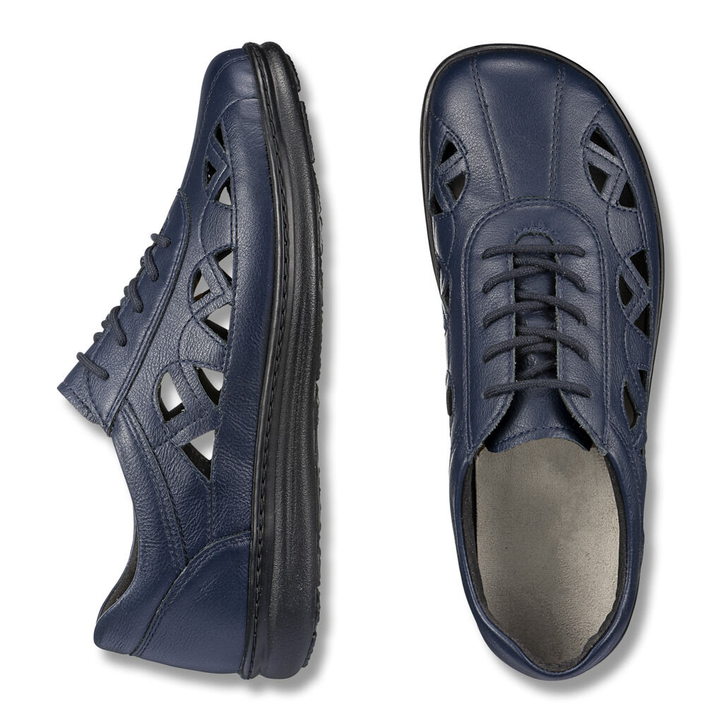 Durch die Verarbeitung von perforierten oder gelochten Ledern sowie von luftdurchlässigen Textilien gewährleisten wir eine hohe Atmungsaktivität unserer Sommerschuhe. Auf diese Weise kann der Schweiß abtransportiert werden und die Außenluft gelangt in den Schuh. Dadurch kann der Fuß atmen.