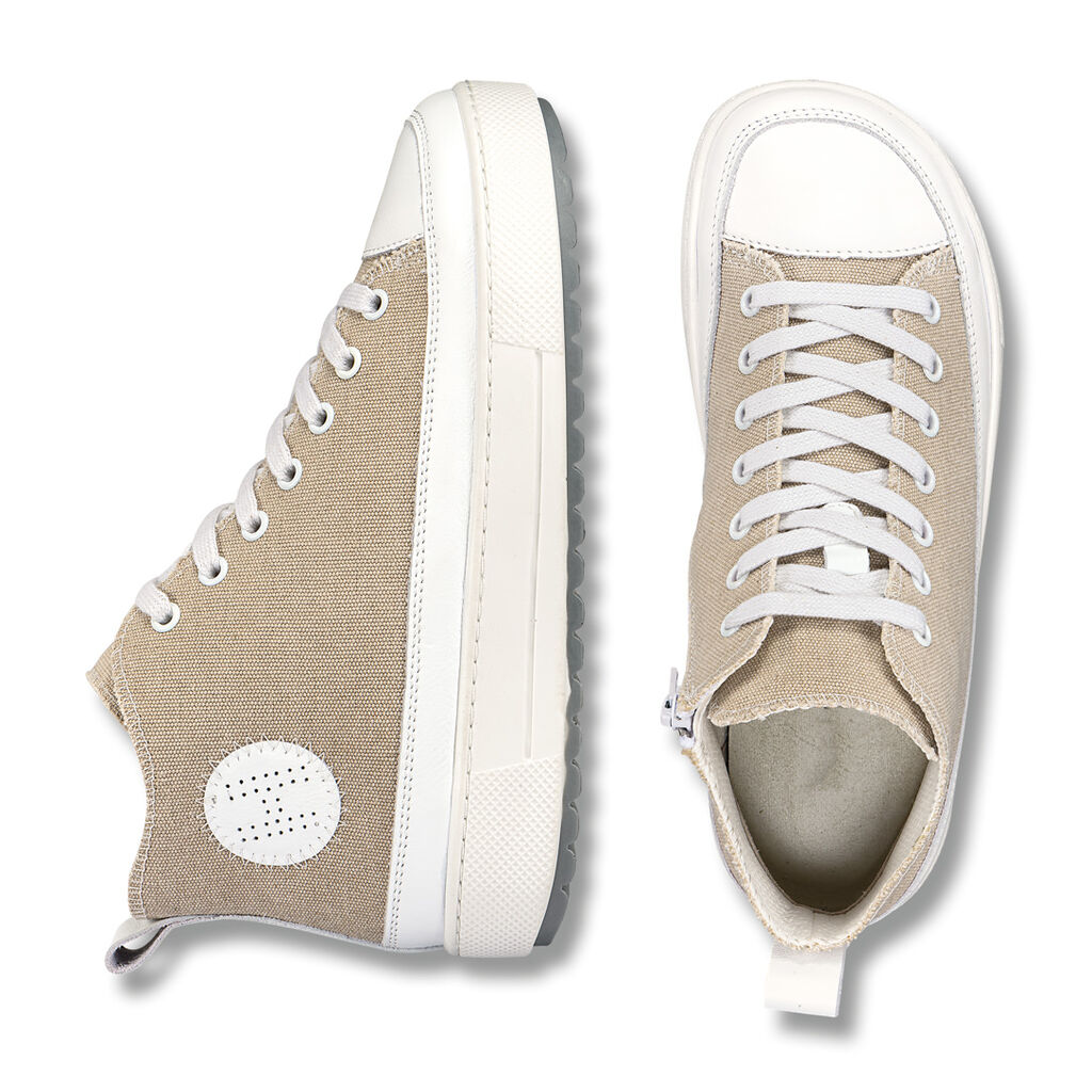 Modischer Canvas-Look bringt einen frischen Schwung in die Schuhmode! Der lässige Sneaker- Bootie kombiniert ihn mit Leder an Zehenkappe und Umrandung. Im Derby- Schnitt zum Schnüren, mit Reißverschluss an der Seite zum schnellen Hineinschlüpfen. Futter und Decksohle sind aus