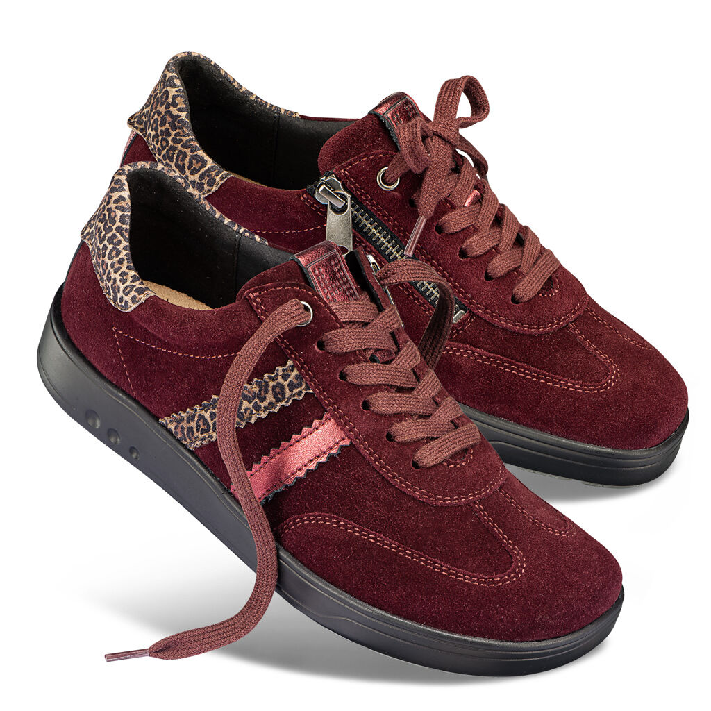 Sneaker mit Leo- und Metallic-Akzenten in den sportlichen Streifen- Applikationen. Weiches Veloursleder mit tiefem Einstieg plus Reißverschluss und Textilfutter. Gepolstert an Zunge und Schaft. Pro-Comfort-Sohle mit einer austauschbaren Einlage.