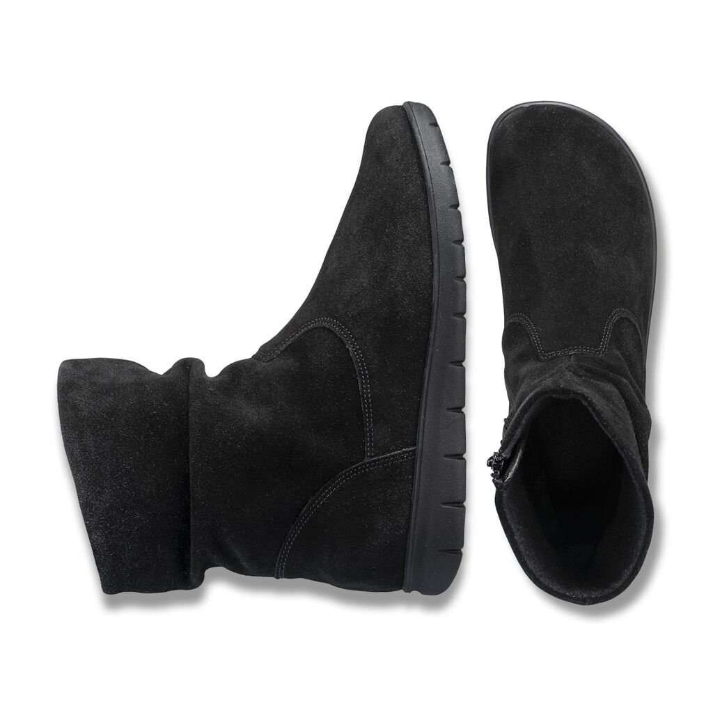 Edel und schlicht, hervorragend kombinierbar zu Röcken wie zu Hosen. Das hochwertige Leder ist in bleibende Falten genäht, seitlich sitzt ein Reißverschluss. Futter und Decksohle des austauschbaren Fußbetts sind aus atmungsaktivem Walkloden. Die Infinity-Sohle aus Naturgummi mit hochbiegsamem Rillenprofil sorgt für ein fließendes Abrollen.