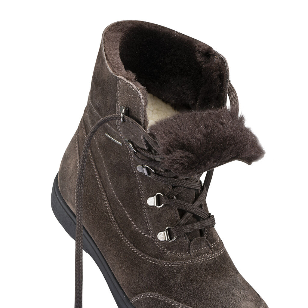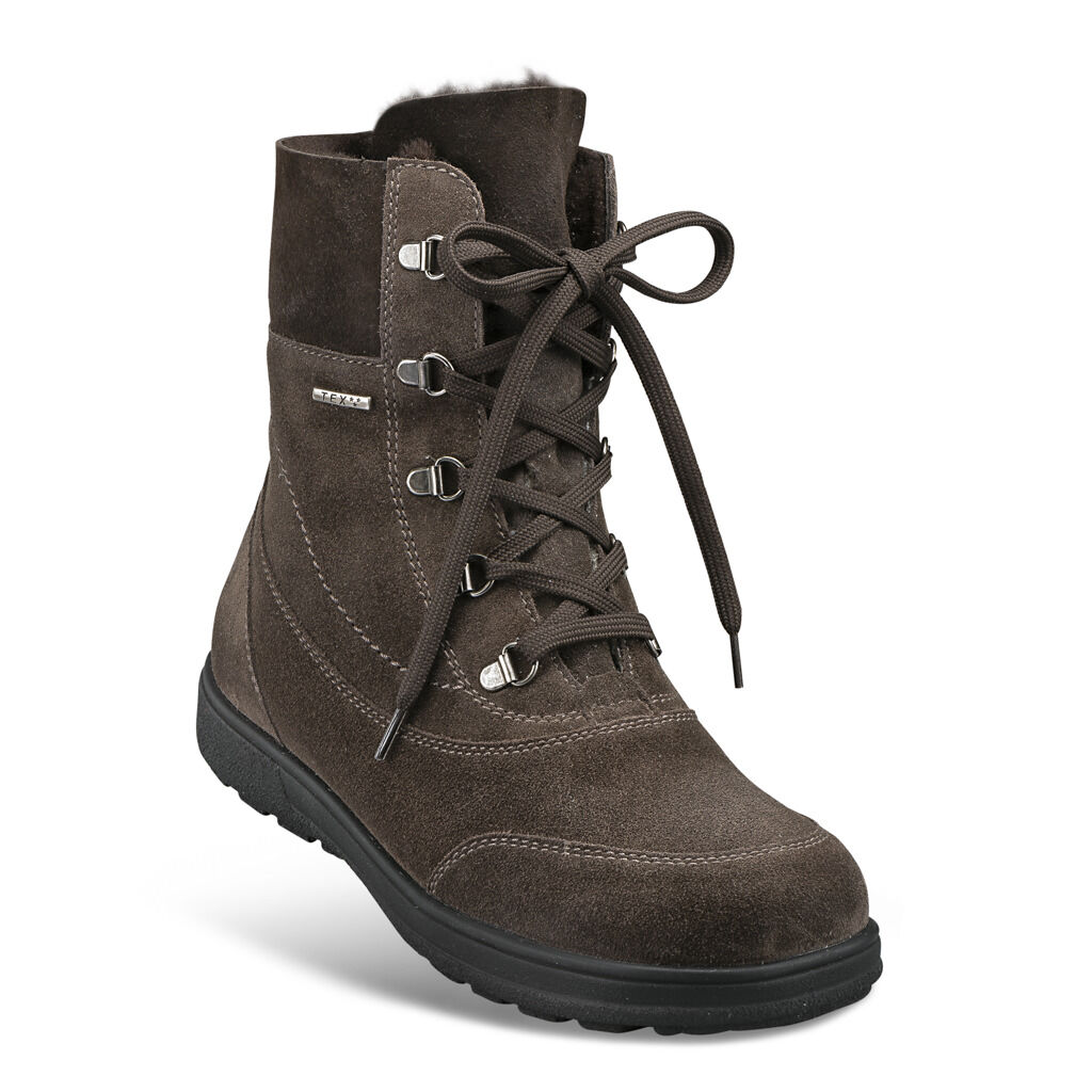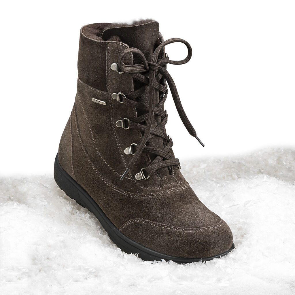 Der kann alles: wärmen, schützen, dämpfen! Luxuriöser Lederstiefel, 100% wasserdicht durch TEX-Membrane, mit Lammfellschaft und Schnellschnürung. Weiches Double-Face am Einstieg und innen mit Weblamm-Futter. Zur Duo-Einlagen-Sohle gehört ein austauschbares, stoßdämpfendes Fußbett sowie ein Weitenausgleich.