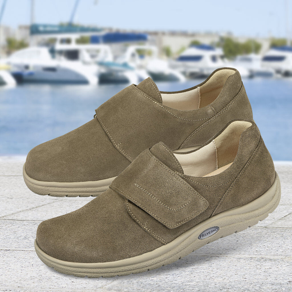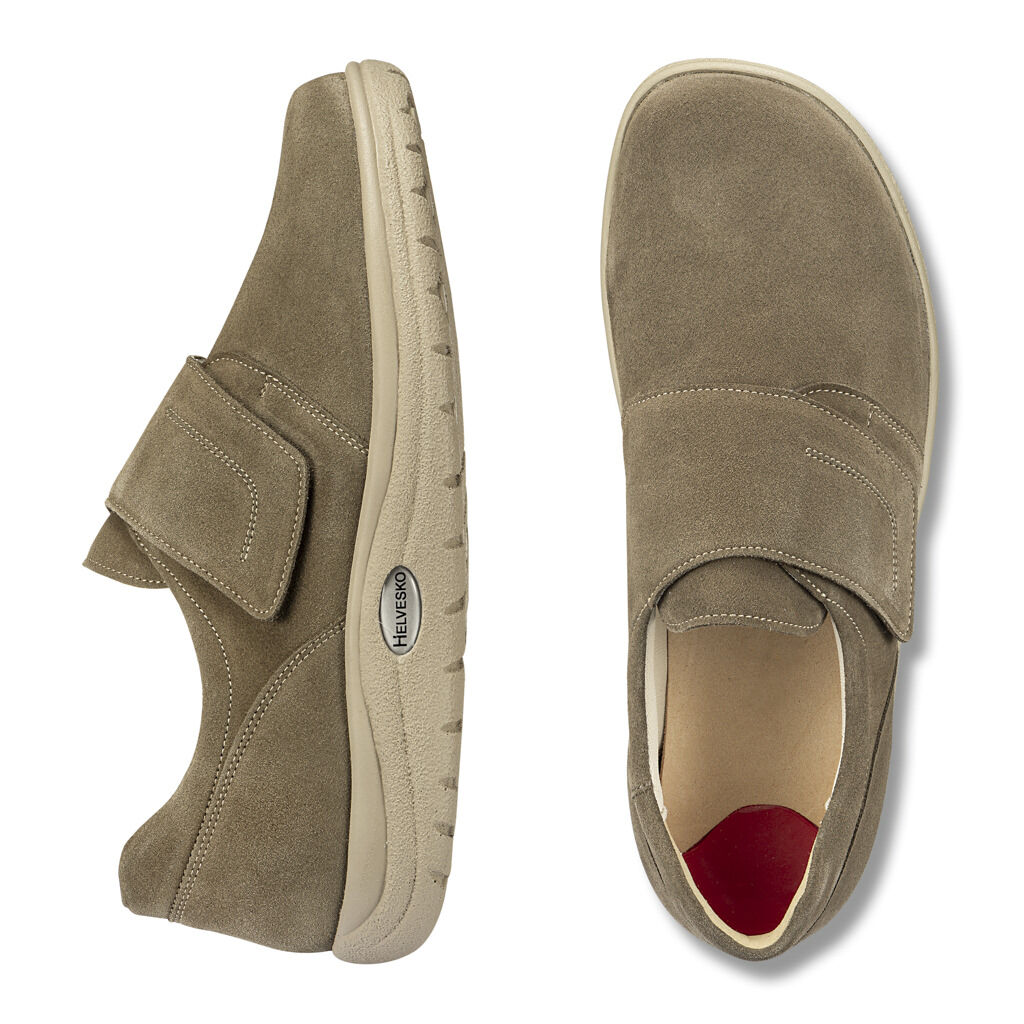 Der vielseitige Slipper passt auf einen Griff durch das praktische Klettband und ist rundum weich und druckfrei. Im zeitlosen Stil aus Veloursleder mit Randpolstern, innen Futter aus fußtrocknender Mikrofaser und ein herausnehmbares Fußbett. Die flexible Explorer-Sohle fördert ideal das natürliche Abrollen beim Gehen.