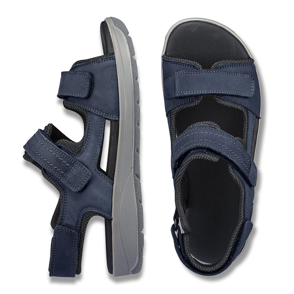 Für Stadt und Urlaub, sogar für sommerliche Wanderungen: sehr bequeme Trekking-Sandale aus robustem, geöltem Nubukleder. Mit Sporttextil gefüttert und an allen Kanten gepolstert, dreifach anpassbar mit Klett. Fußbett mit rückbildendem Dämpfungskern und Bezug aus antibakterieller Mikrofaser. Die stoßreduzierende Anti-Schock-Sohle dämpft jeden Schritt sanft ab und ist überraschend leicht.