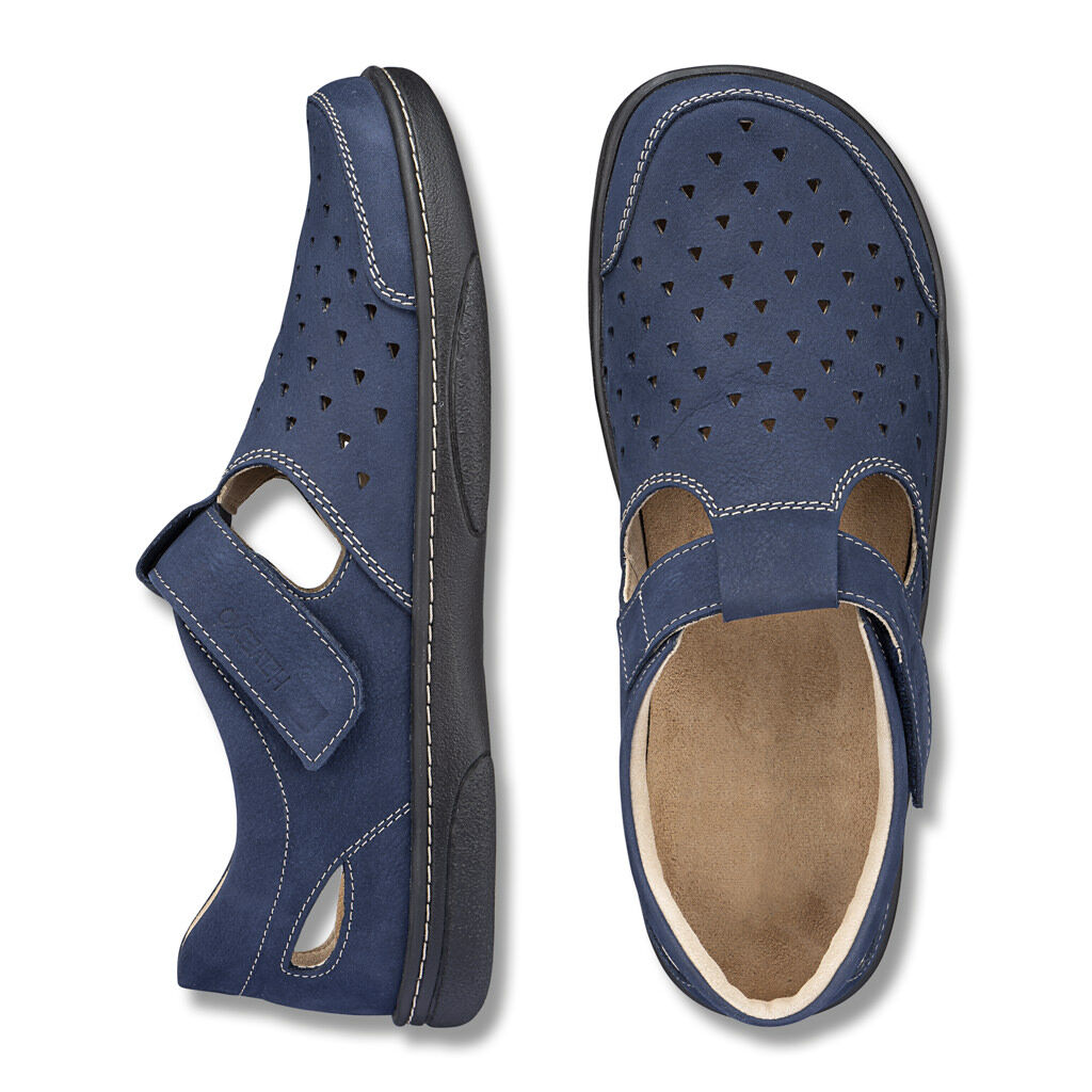 Schonender Halt durch Klettverschluss und Fersenband. Flexibel am Fuß, fein gelochtes Nubukleder und weiches Ziegenlederfutter. Federleichte Schalen-Sohle mit Wechselfußbett.