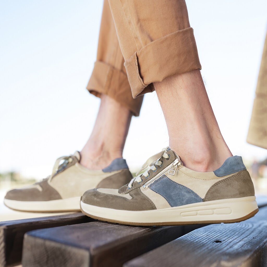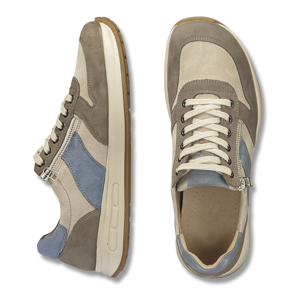 Großzügiger Sneaker aus weichem Nubuk- und Veloursleder, an Zunge und Schaftrand sanft gepolstert, mit atmungsaktivem Mikrofaserfutter und Reißverschluss zum schnellen Reinschlüpfen. Soft- Move-Sohle mit Dämpfung und elastischer Rückfederung aus luftgeschäumtem Granulat - Rücken und Gelenke werden so ideal entlastet. Herausnehmbares Naturkork-Fußbett.