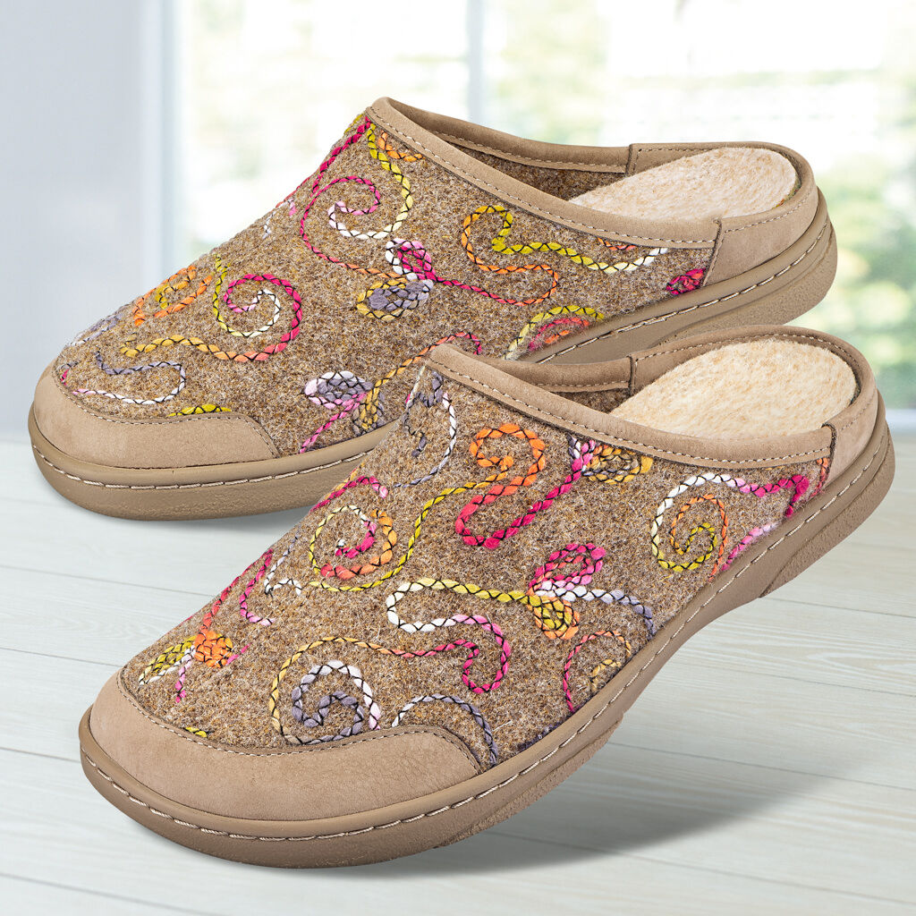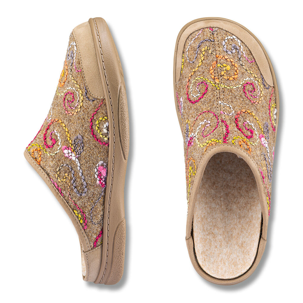 Die robuste, bequeme Wollfilz- bzw. Textilpantolette ist nie zu warm und nie zu kalt. Ideal für die ganze Familie. Lederverstärkt und mit federleichter Schalen-Sohle. Das Fußbett ist gegen eigene Einlagen austauschbar.