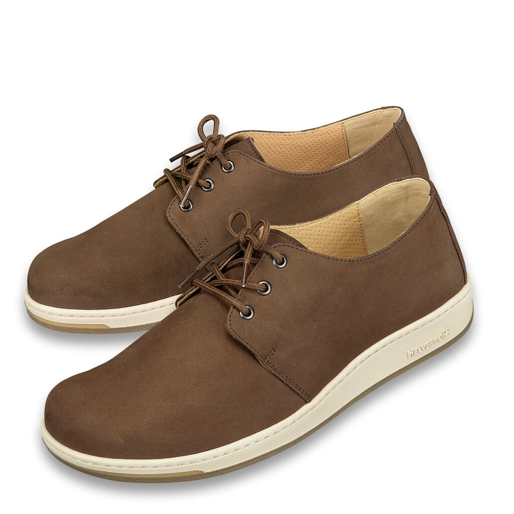 Oben nahtfrei und sportlich schick! Weicher Schnürer aus Rind-Nubukleder mit weit zu öffnender Derby-Schnürung. Mit gelochtem Lederfutter und austauschbarer Memory-Schaum- Einlage. Dämpfende, gelenkschonende City-Style-Sohle.