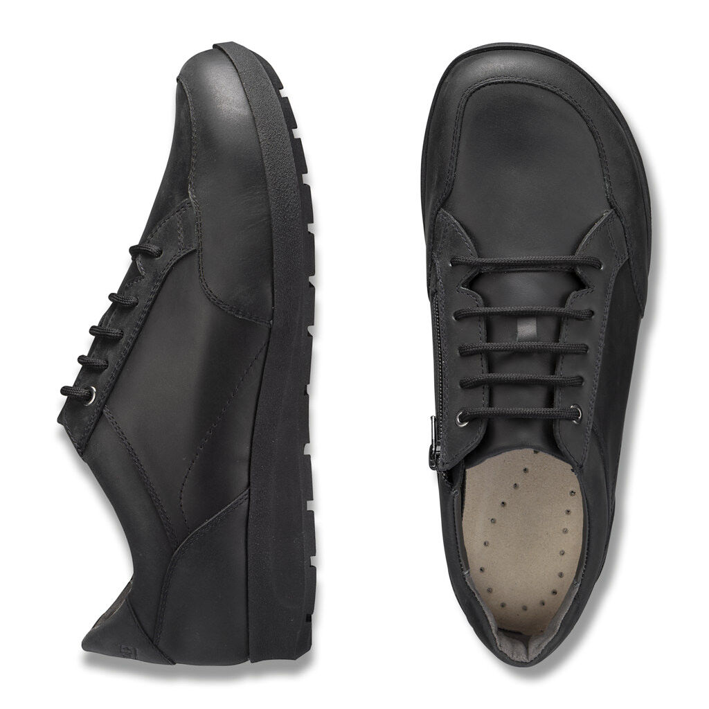 Geräumiger Derby-Schnürschuh aus griffigem Öl-Nubukleder. Der Einstieg lässt sich weit aufklappen, die Extra-Weite-Sohle ist federleicht und bietet extra viel Platz. Mit praktischem Reißverschluss, Lederfutter und Randpolstern, das Fußbett ist gegen eigene Einlagen auswechselbar.