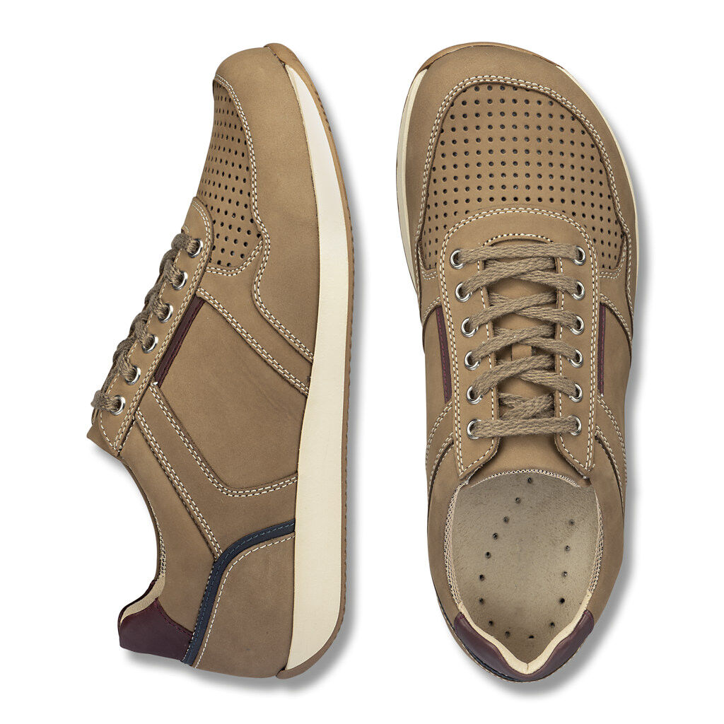 Sneaker für viele Gelegenheiten, natürlich im Look, konsequent bequem in der Barfußform. Ein attraktives Lederpatchwork mit stabilen Kappen und Polstern an Rand und Zunge. Wunderbaren Halt gibt die lange, leichtläufige Ösenschnürung. Innen atmungsaktives Futter aus Sporttextil und ein austauschbares Fußbett. Es unterstützt optimal das runde Abrollen auf der dämpfenden Sportstyle-Sohle.