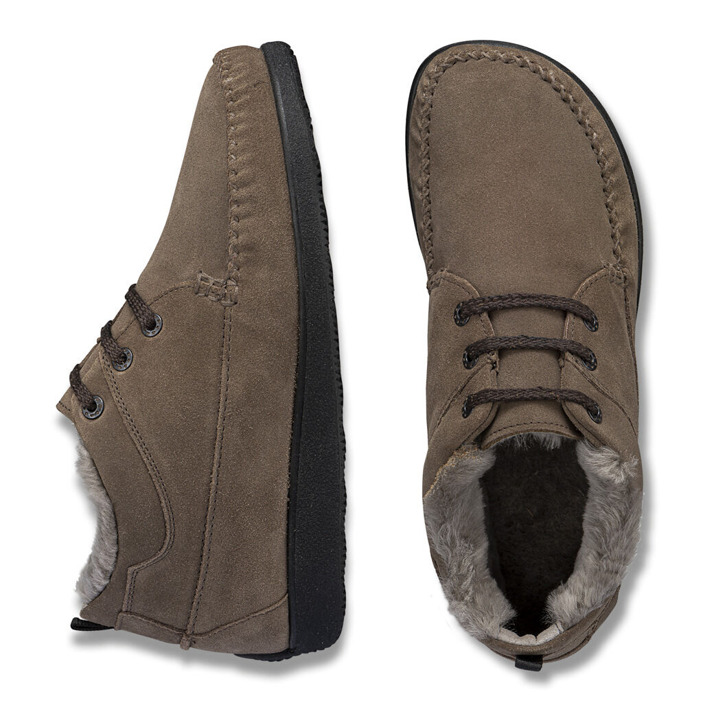 Der knöchelhohe Wintermokassin ist aus weichem Veloursleder mit molligem Lammfellfutter und warmer Decksohle. Elastisch verarbeitet mit doppelter Handnaht und leichtgängiger Schnürung. Leichte Sohle mit Fersen-Scheuerschutz.